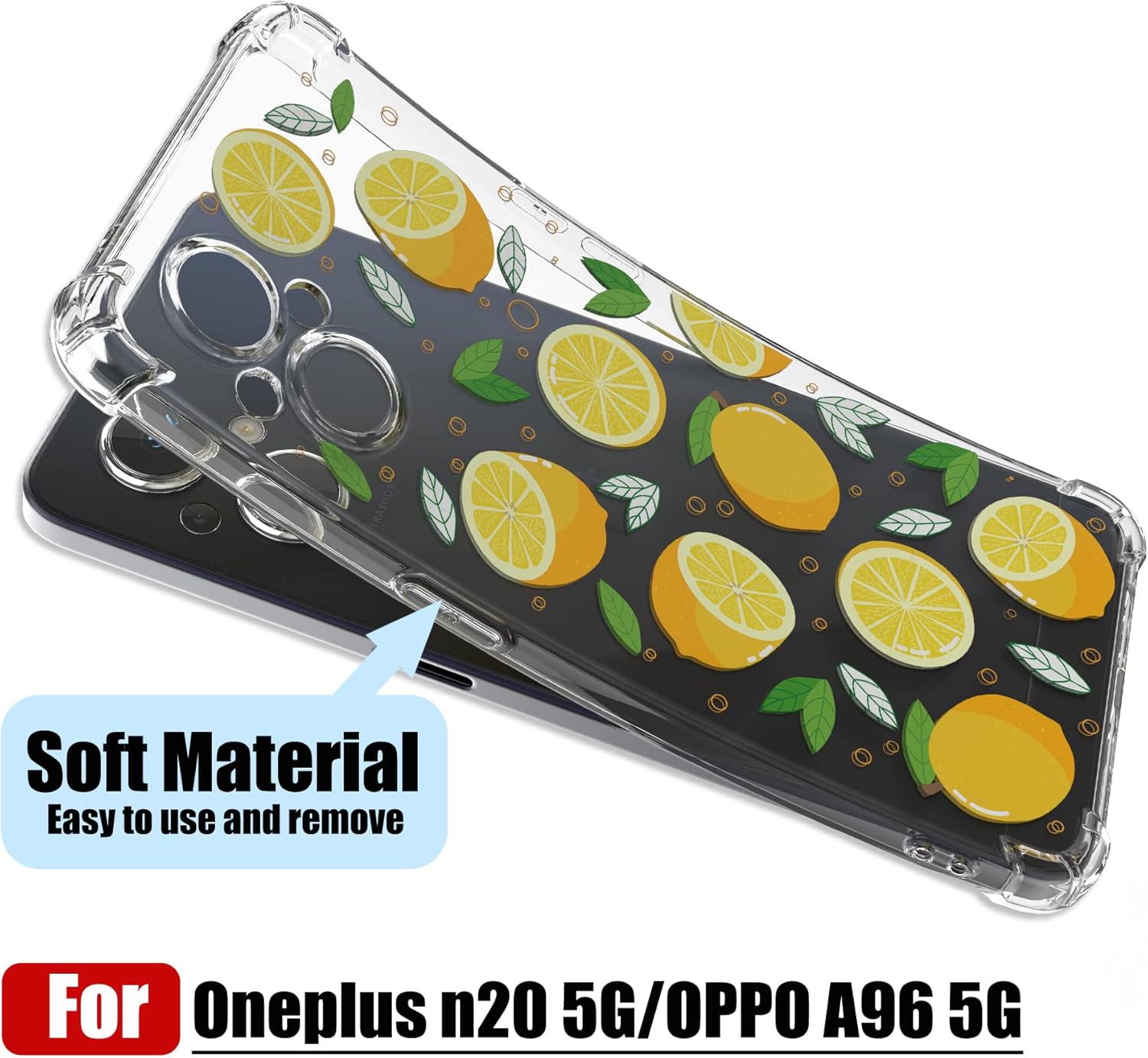 1,Colour Name:Lemon /daisy/flower 2,for OnePlus Nord N20 5G Clear Protective Soft TPU Silicone Cases