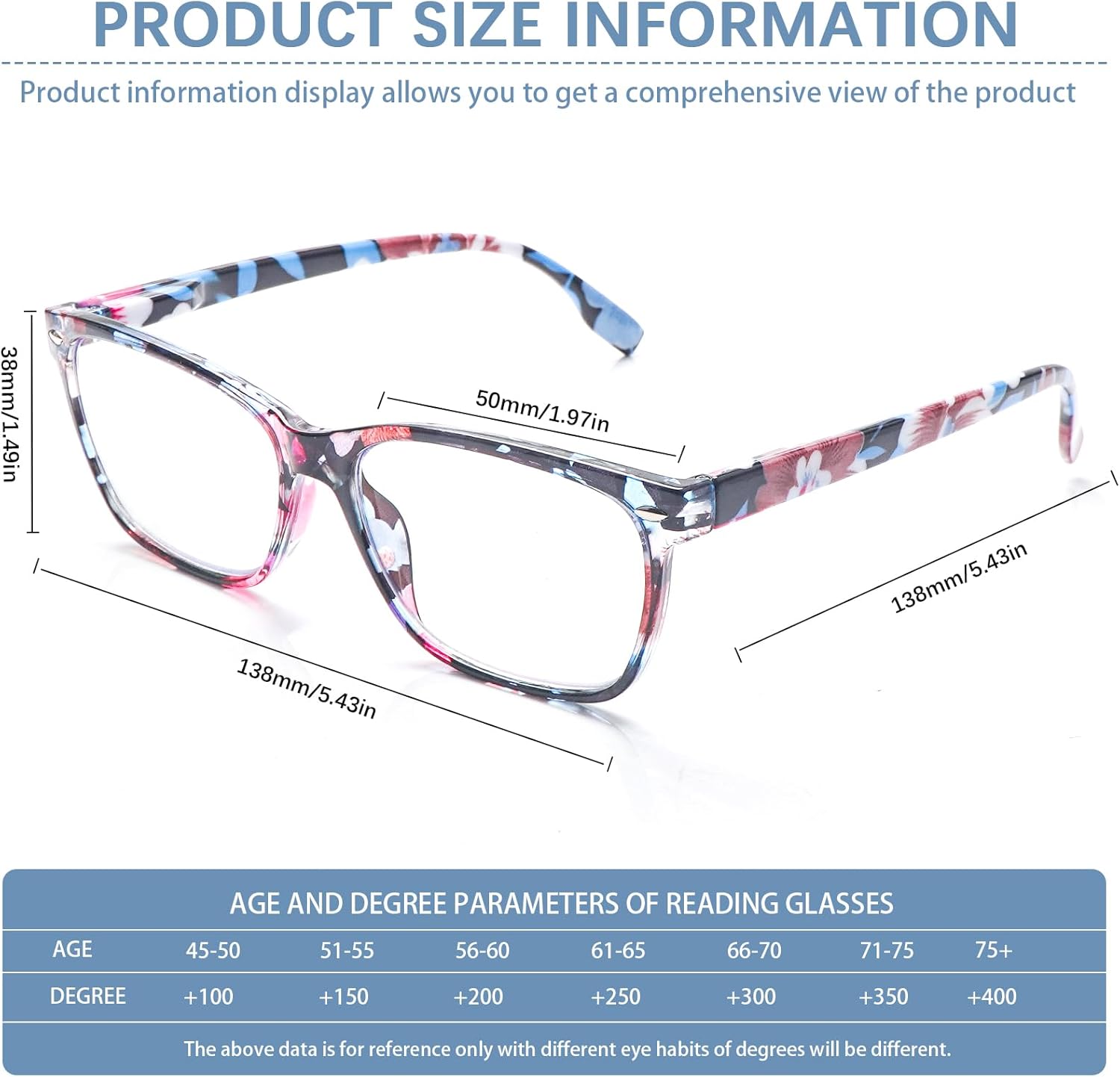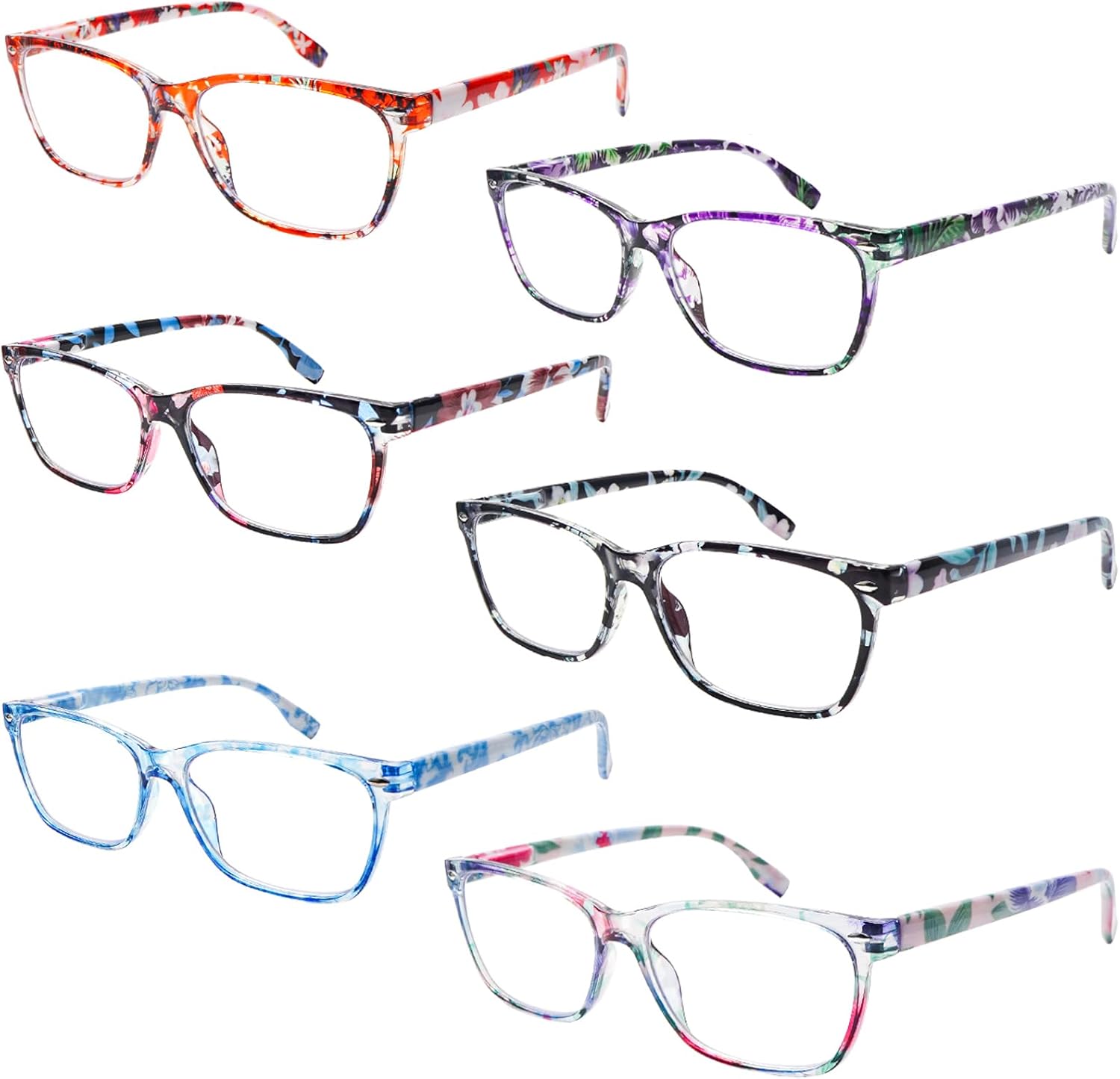 6 Pack Reading Glasses for Women,Blue Light Blocking Glasses Anti Eyestrain Readers with Spring Hinge Eye Glasses