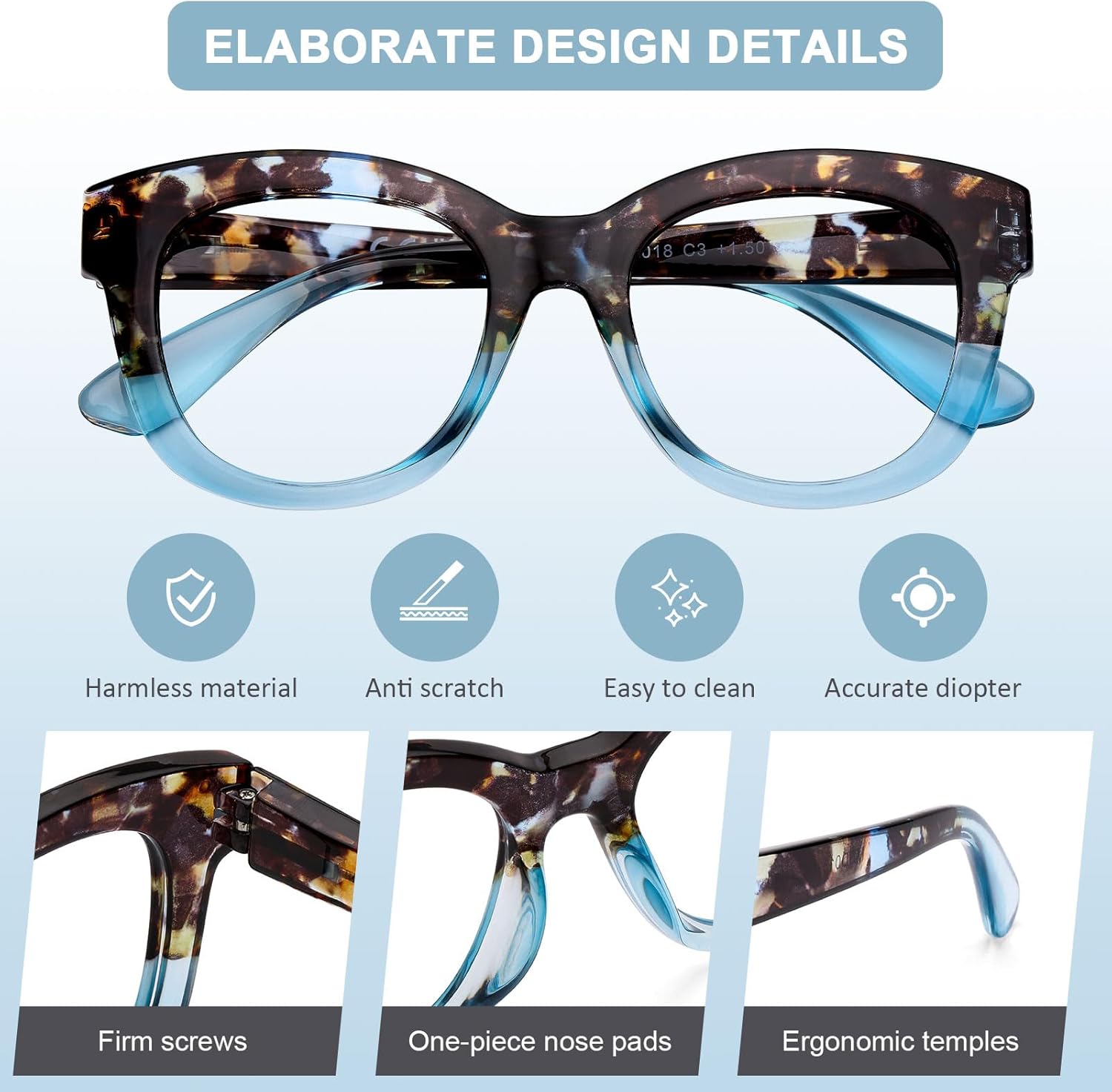 【FASHION DESIGNER STYLE】- Fashion oversized round designer frame reading glasses updated with a fun and colorful design for a fresh look. Always Have a Stylish Look and Clear Vision When You Need It, give you all day reading protect