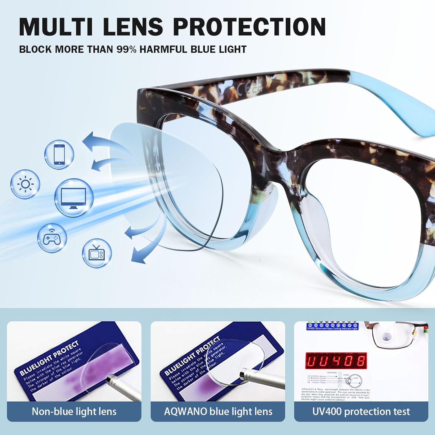 【SUITABLE OCCASION】–AQWANO anti blue ray readers for female. You can also wear it to party, walking, fishing, travel, etc., because the fashionable anti-Blu-ray eyewear are always resistant to ubiquitous harmful blue light and UV400 and sand