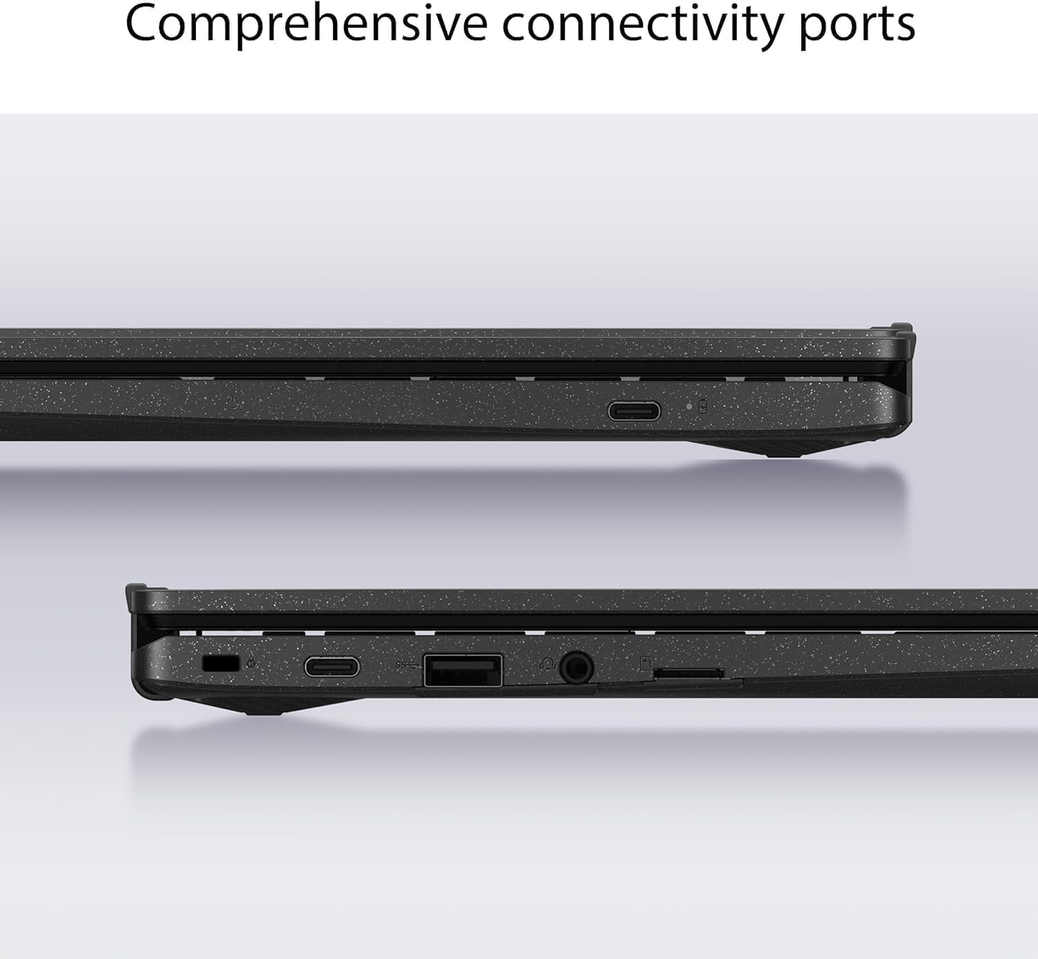 Comprehensive Connectivity Options: The ASUS Chromebook CM1402 is equipped with multiple ports, including 1 x USB-A 3.2, 2 x USB-C 3.2, 2 x Thunderbolt 4, a headphone/mic combo jack, and a media card reader, ensuring you have all the connectivity you need
