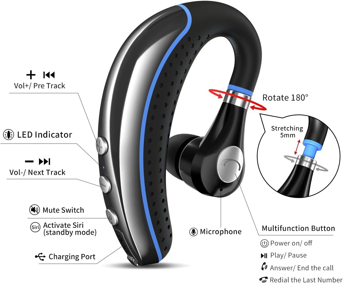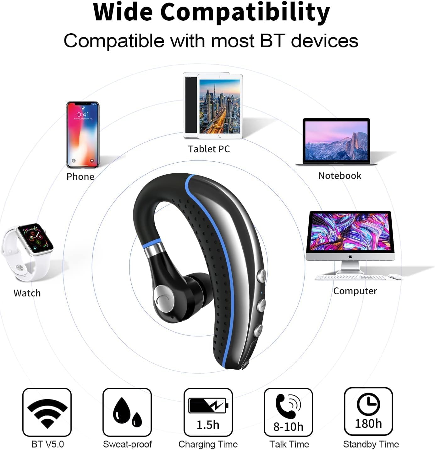 Long Battery Life:The Bluetooth headset just takes about 1.5 hours to fully charge, With up to 6-8 hours of continuous calls and 6-7 hours music playing time, so it can lets you make reliable wireless calls throughout the day on a single about 1.5 Hours quick charge. Up to 180 hours in standby mode, Large-capacity battery for delivering, traveling, Meeting, outing, driving, etc.