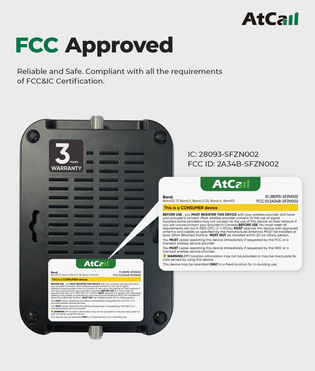 ăFCC ApprovedăFCC ID: 2A34B-SFZN002. RV cell phone booster is compliant with all the requirements of the standards applied. We provide professional online tech support, please feel free to contact us
