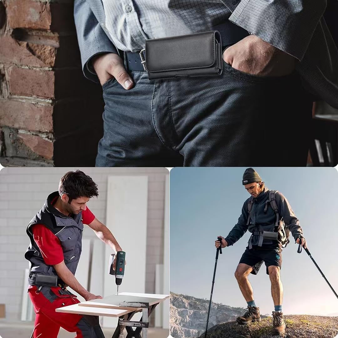 Premium Material: The android phone carrier with belt clip is made of PU leather, Suitable for camping, hiking, traveling, cycling, running, outdoor and construction work. Soft inner lining provides excellent protection for your phone