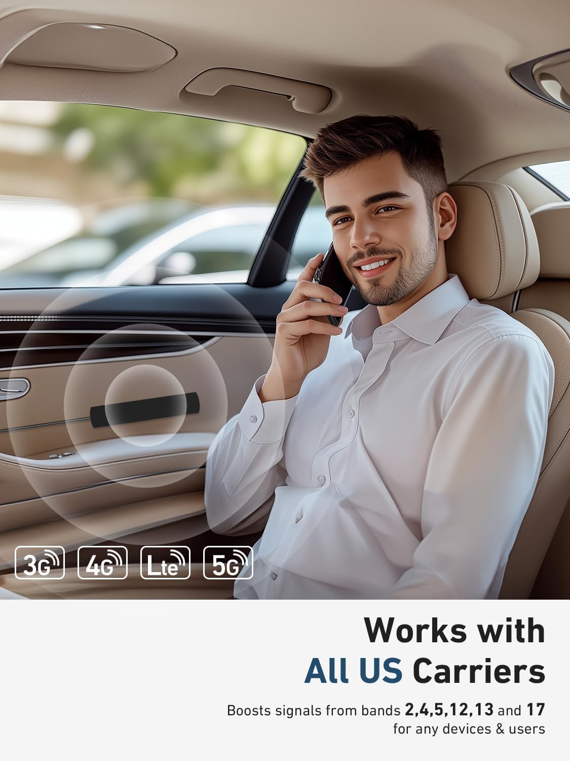 ă5G COMPATIBILITYăBoosts 4G LTE & 5G signals on Band 2, 4, 5, 12, 13 and 17 for multiple users & devices simultaneously, so everyone in your vehicle will enjoy clear calls, better voice quality, faster data speed and smooth stream videos. Please CHECK YOUR BAND BEFORE PURCHASE and make sure that the frequency band of your phone is the same with that of the booster.