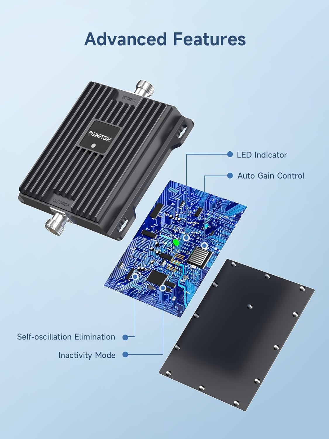 怐Interference-Free怑- With automatic gain control, our signal booster effectively prevents interference with surrounding base station signals. Unlike devices that support multiple frequency bands, our product focuses on specific one band, eliminating interference between bands.