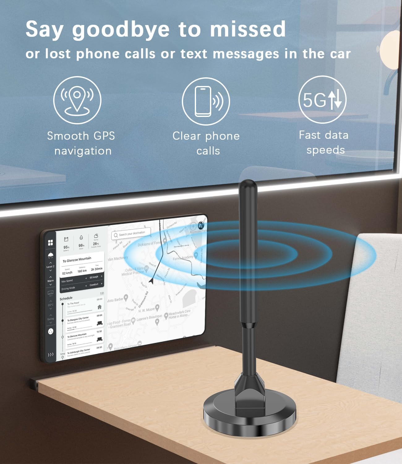 Truck cell phone signal booster: Enhance 4G LTE 5G data and call services, RV cell phone signal booster for cars trucks any vehicle, enjoy excellent 4G LTE 5G voice quality and fast network data, fewer missed/dropped calls, higher audio quality, faster streaming. No more buffering time, and go beyond providing lasting coverage for your car, RV, truck, trailer, SUV, improving poor signal reception. Get the reliable cell signal for your vehicles. No more dropped calls and slow data speed on the go!