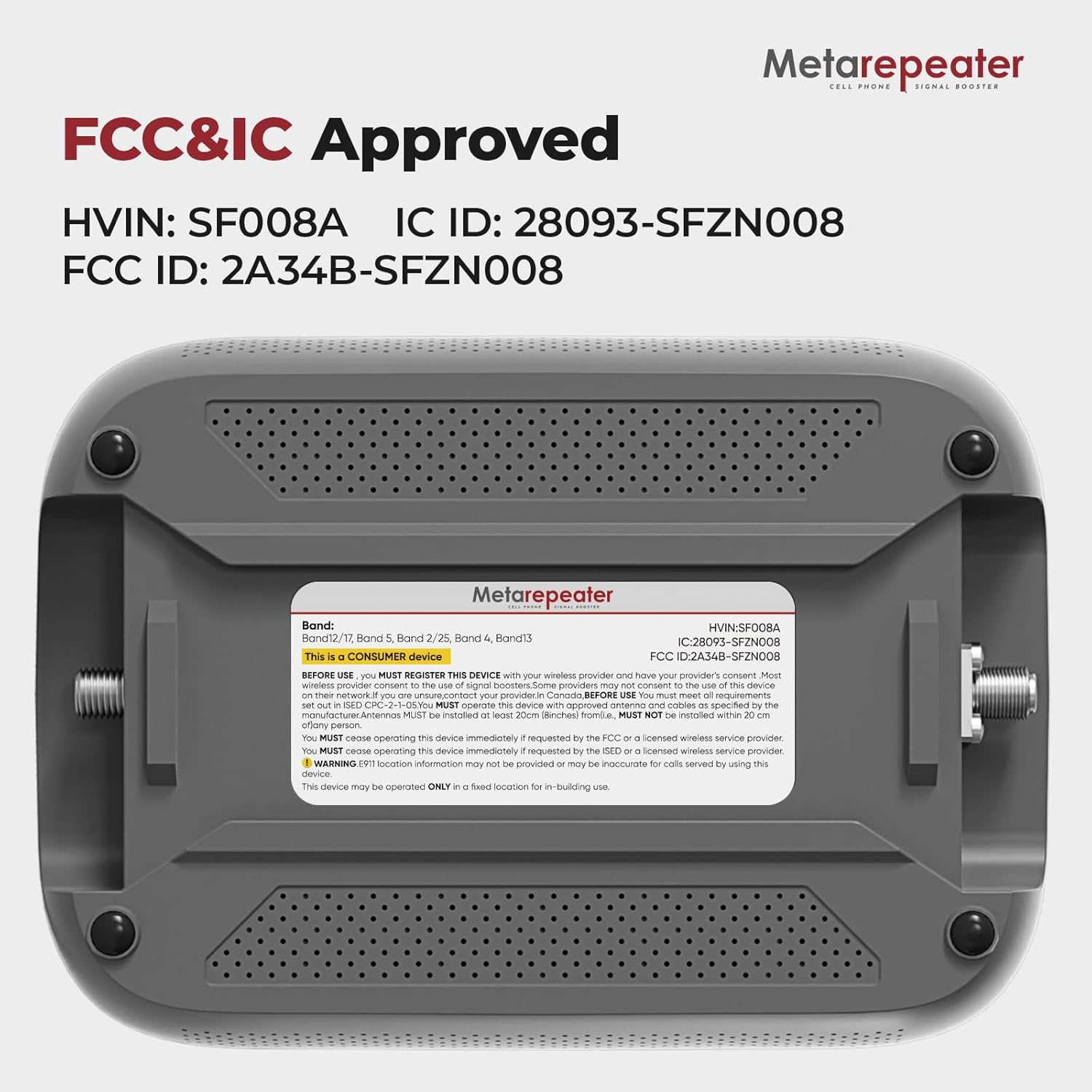 ăSelf Installation & FCC Certificationă Includes all components for installation. No complicated tools or apps required. Following the cell signal booster installation instructions and the LCD display makes it easy to complete the installation process. This home cell phone booster approved by FCC certified, FCC ID: 2A34B-SFZN008.