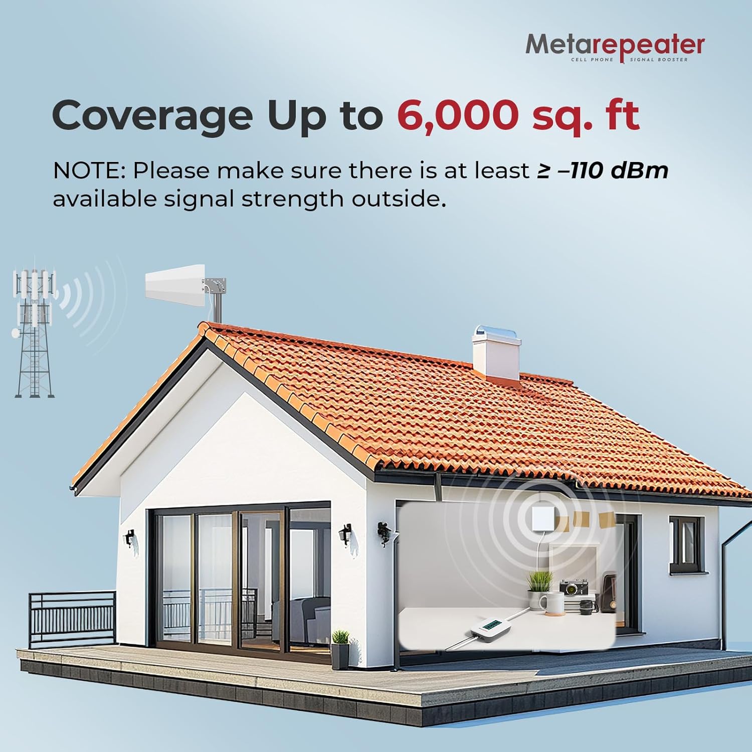 ăBoost Weak Cell SignalsăThe cell phone booster for home amplifies weak signals, speeds up data, improves call quality, and allows smooth streamingâideal for multiple users and devices. Our cellular signal booster provides up to 6,000 sq. ft of extended and stable coverage signal range. Supports a variety of indoor application scenarios, including but not limited to bedroom, living room, garage, basement.