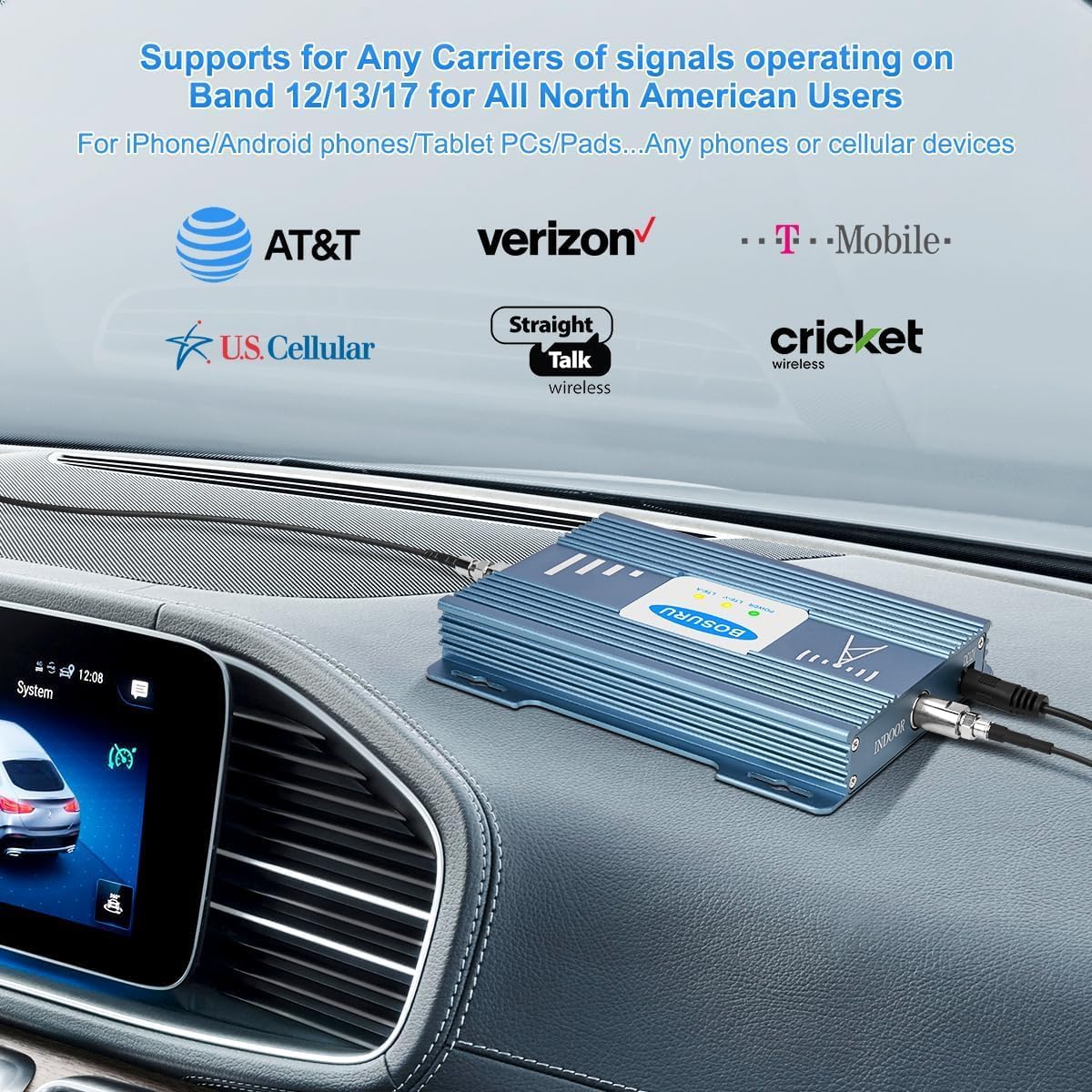 1. The verizon Cell Phone Signal booster for RV Cell phone booster RV signal Booster AT&T Cell Booster for RV supports band 13/12/17, please confirm if your cellphone band is covered by the T-Mobile AT&T cell phone signal booster RV verizon signal booster for Car before purchase.