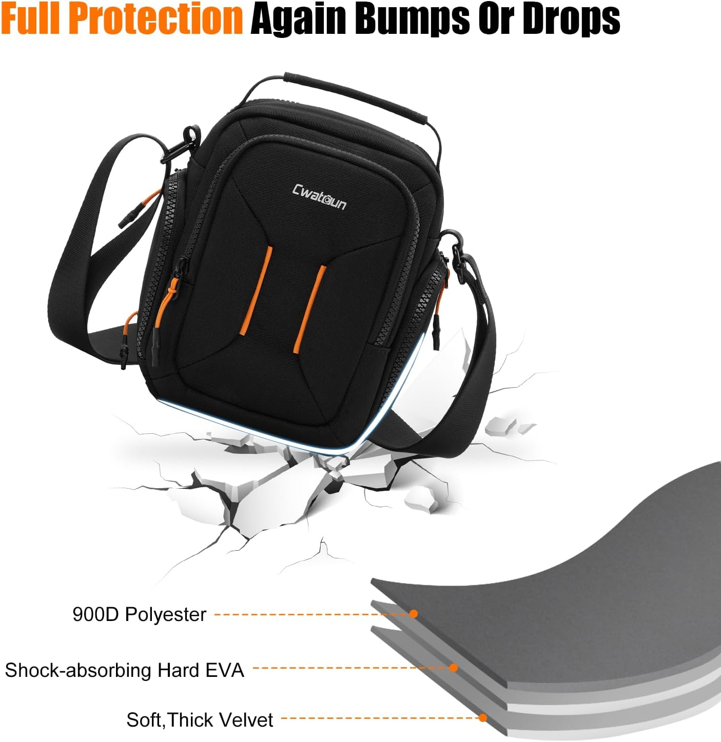 ćExquisite Craftsmanship, Water-resistant&Anti-scratch FabricćMade of water-resistant and anti-scratch fabric,Cwatcun camera shoulder bag will denfinitly company you long time. And we use two way zipper that The zipper has undergone 5000 repeated stretch tests, won’t rusty within 3 years, and won’t break within 5 years.