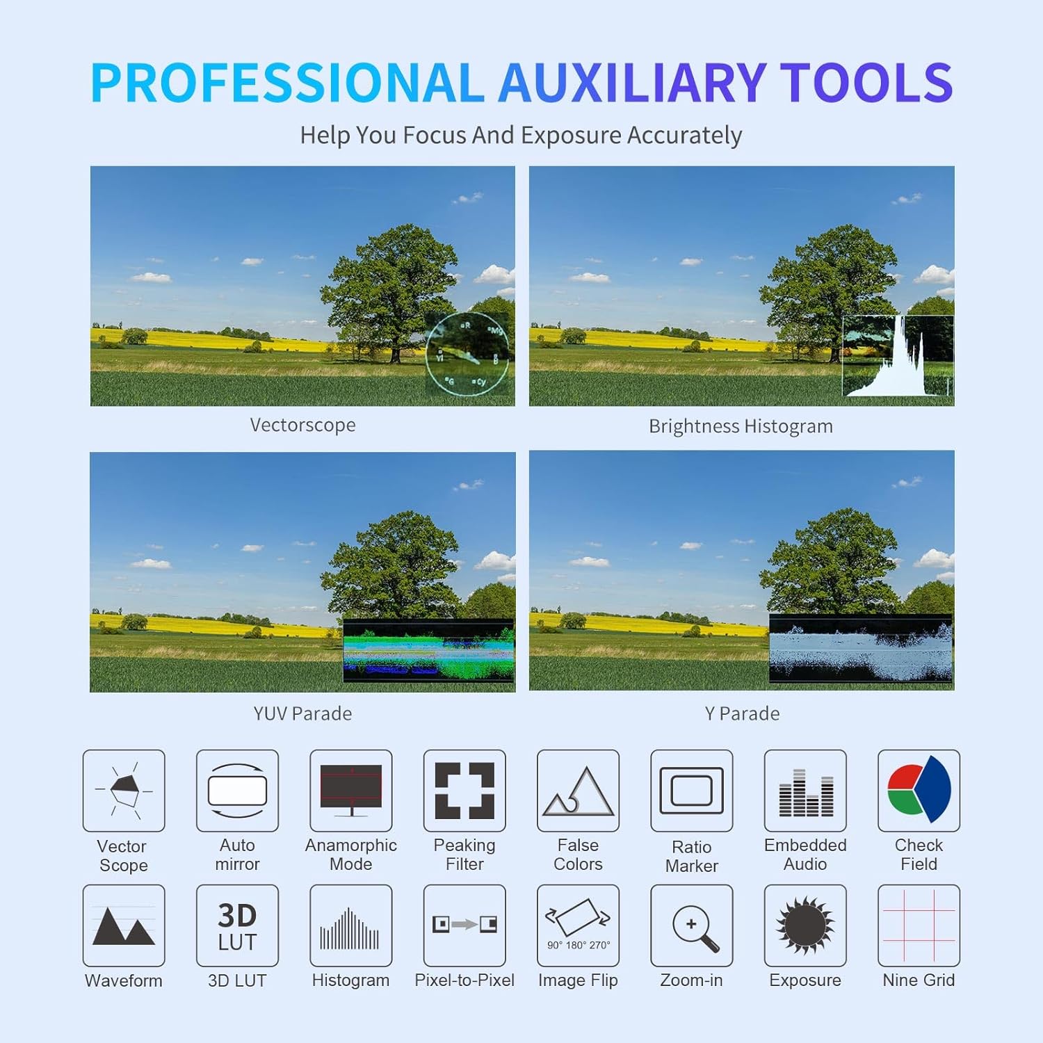 【Ideal Camera Partner】 Efficient DC output design. F6 PLUS dslr monitor with a dummy battery(Optional), it can power your DSLR or mirrorless camera at any time, extend the run-time of your camera, while provide a more usable display