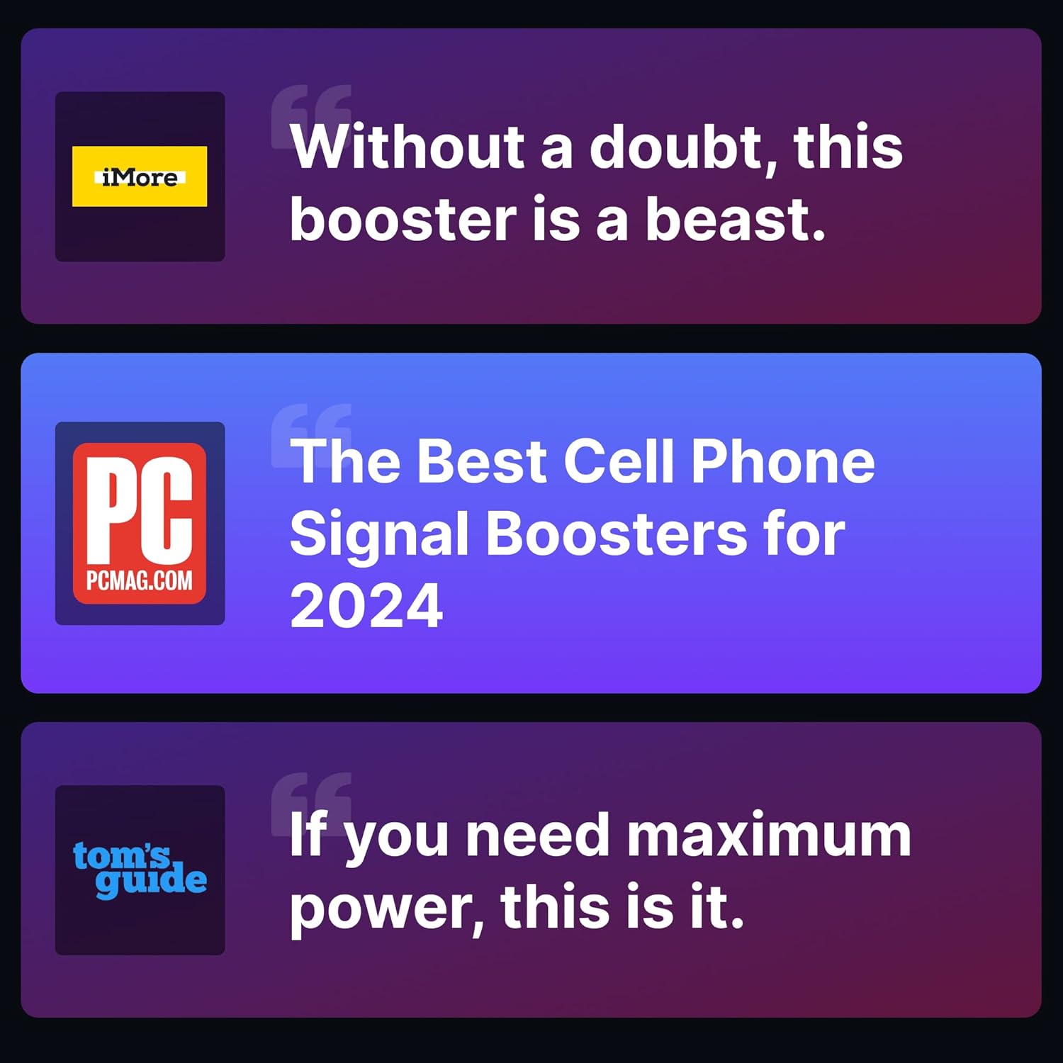 FASTEST DATA RATES & NO MORE DROPPED CALLS: Slow data rates and dropped calls are the excruciating symptom of weak signal. The CEL-FI G41 AT&T, T-Mobile, and Verizon signal booster amplifies cell signal to bring you perfect coverage.