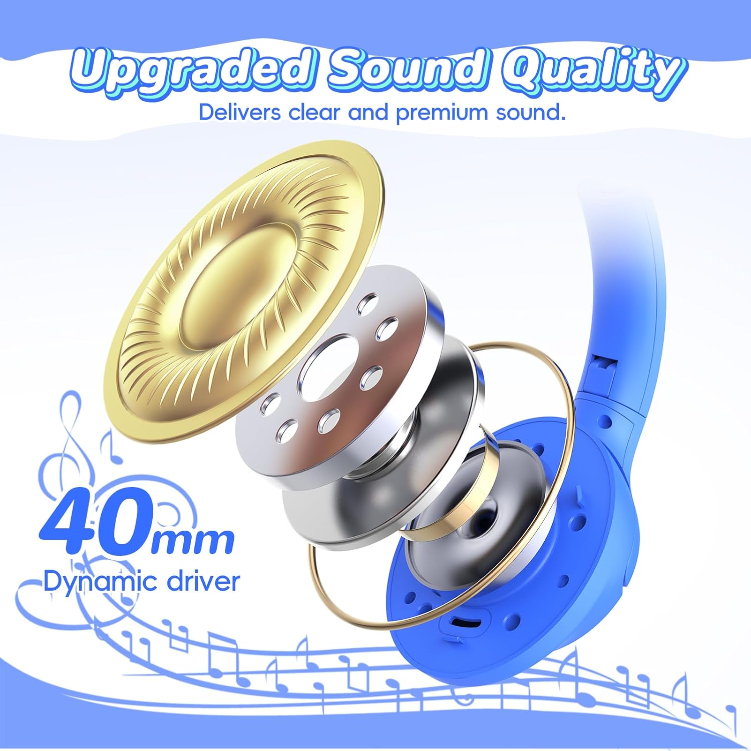 【Bluetooth 5.4 & Built-In Microphone】Experience super-stable wireless connections with advanced Bluetooth 5.4. One-touch operation for music/calls. The built-in microphone ensures crystal-clear hands-free conversations. Kids headphones wireless is compatible for Chromebook, for Tablet/ Laptop/ PC etc, fitting to all your child’s learning and entertainment needs.