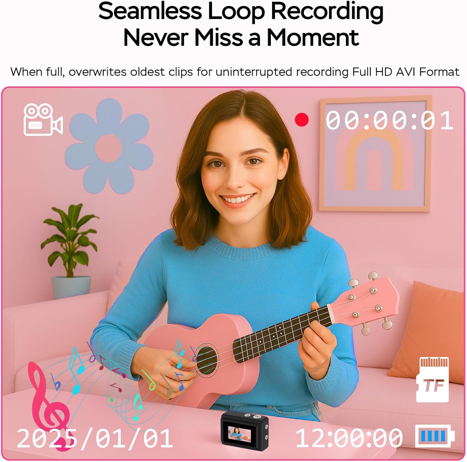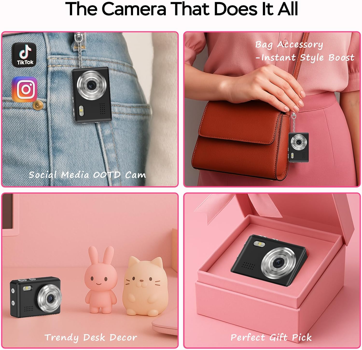 ćUltra-Portable Keychain Designć Capture life’s moments with our 0.04lbs mini camera that fits on your keychain! At just 1.67×0.59×1.13 inches, this tiny camera slips effortlessly into pockets for concerts, anniversaries, travels, or daily adventures. The included anti-loss keychain mount ensures you’ll never miss spontaneous shots.