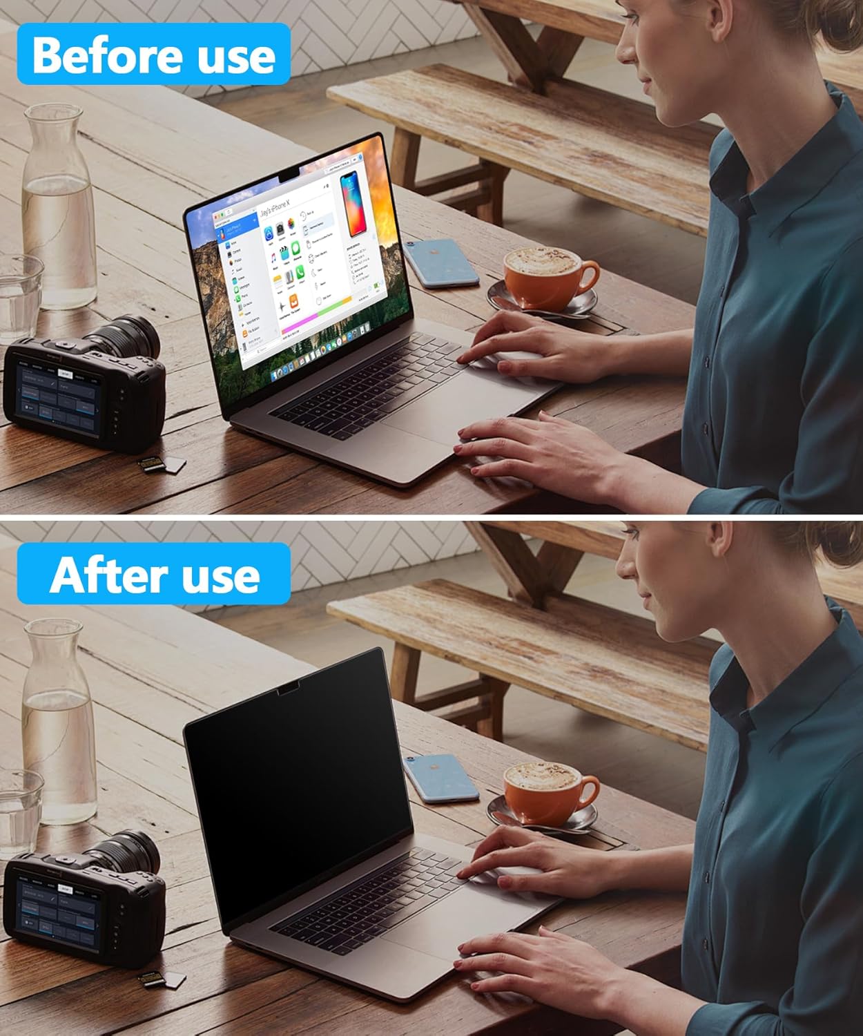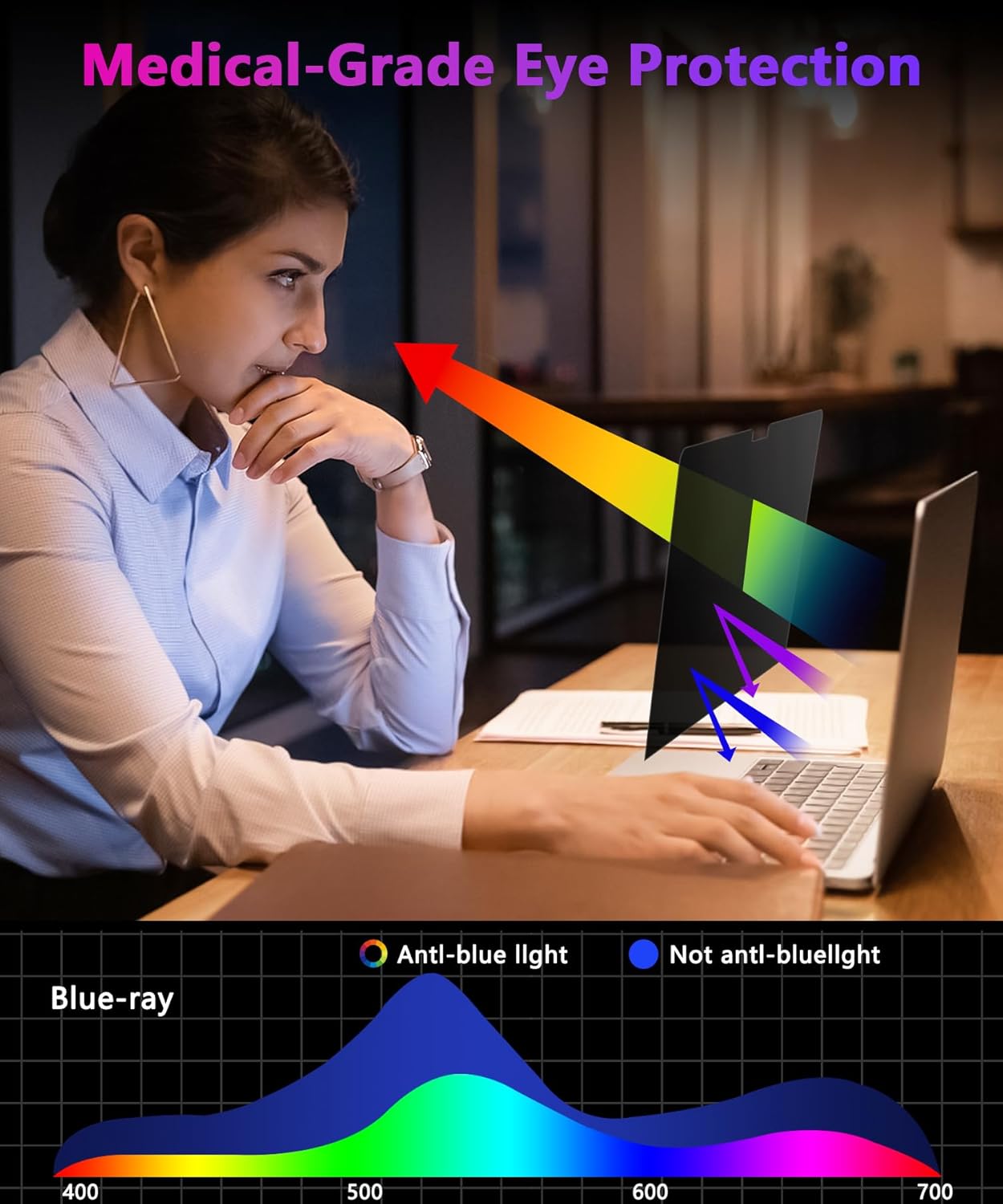 【Enhanced Eye Comfort】 Prioritize your well-being with our superior anti-glare and blue light blocking technology. Designed to reduce eye strain during long work sessions, our macbook pro 14 inch privacy filter enhances visual comfort, making it ideal for students and professionals who need to focus without the risk of headaches or fatigue.