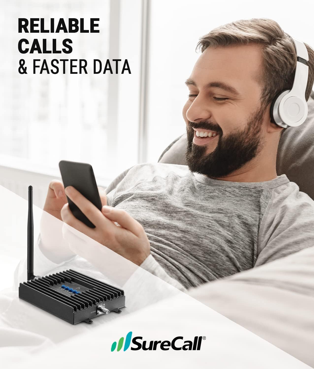 Best For: The Sure Call Fusion4Home Yagi/Whip is the most powerful cell phone signal booster for medium sized homes in rural and suburban areas. Indoor coverage area will vary based on available outdoor signal strength: 1-2 bars ~1, 000 sq. Ft, 3-4 bars ~2, 000 sq. Ft, 5 bars ~3, 000 sq. Ft.